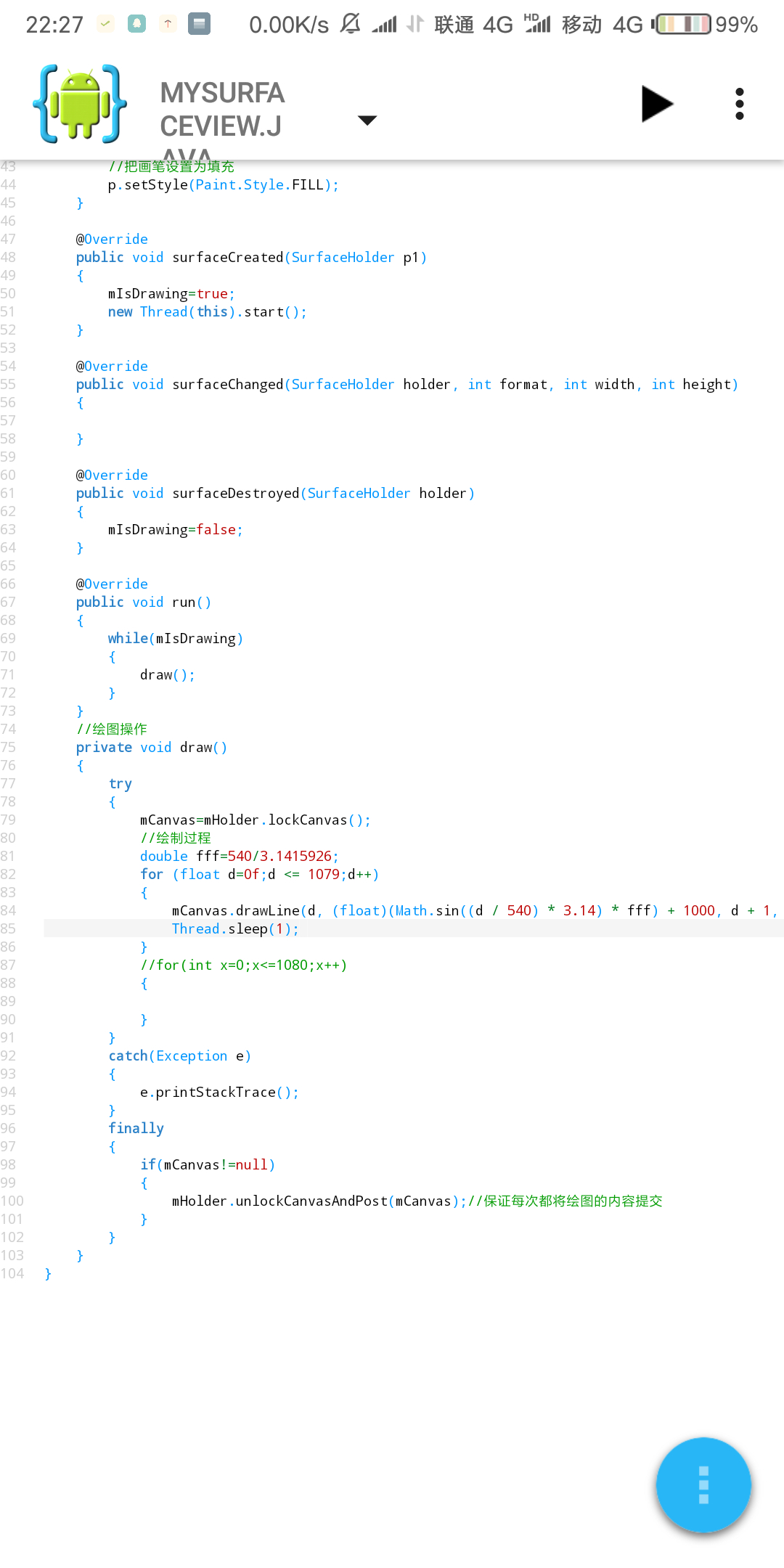 SurfaceView 之前的绘图操作都会被保留到底是什么意思?是{在surfaceview外invalidata会保留之前的绘图操作}这个意思?另外,我在View里也弄过sin的动态效果,也是用的线程,为什么View就行surfaceview就不行?
