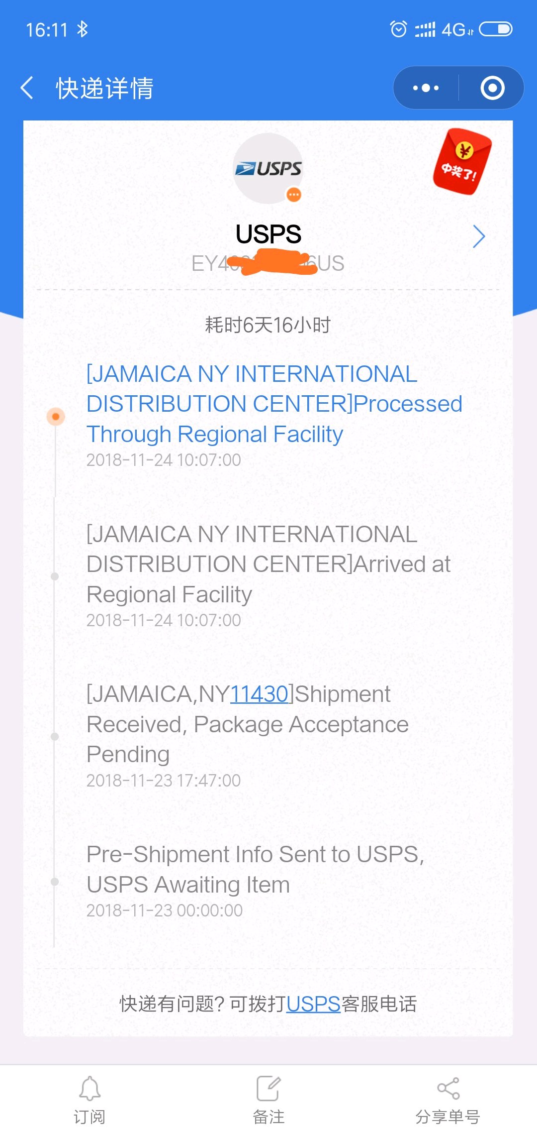 求助 usps EY开头单号一直是卡在processed