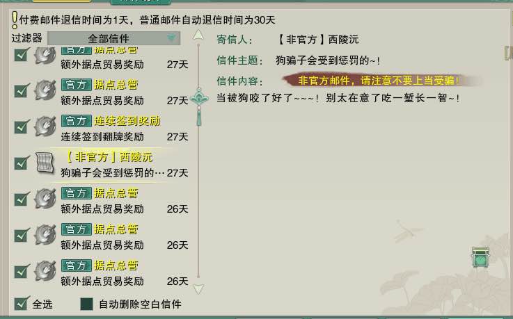 最近因为被骗子骗了外观钱,心有不甘地天天在世界刷骗子,认识了这个ID西陵沅的万花小姐姐,寄了个六级五彩石给我,不知道作何答复,日后江湖救急,记得喊我。
