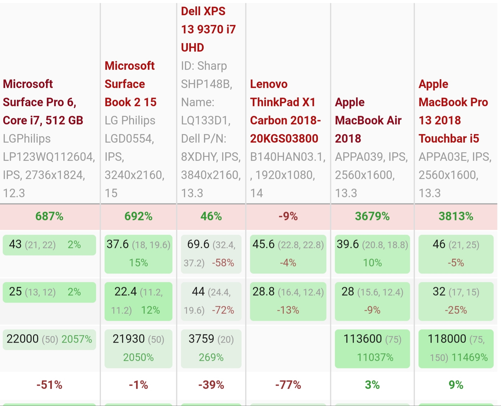 无图无真相。附图是以suRFАce go为基准,第一栏是响应速度综合分,最后一栏是屏幕综合素质分。下面还是数十个分项得分,太长截不了屏,有兴趣的自己去看(要有轻功):