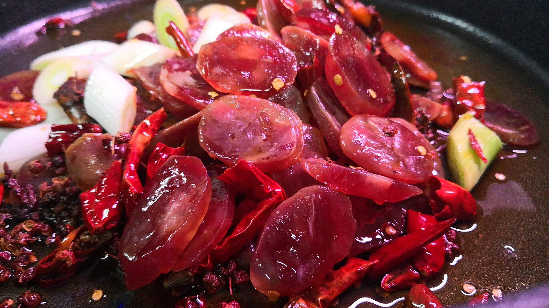 贫僧灌的广式腊肠。炒了一份麻辣香肠,虽被吧友放了鸽子(约好了来吃饭的),但一人饮酒醉也不错。烧的大肠更是棒极了