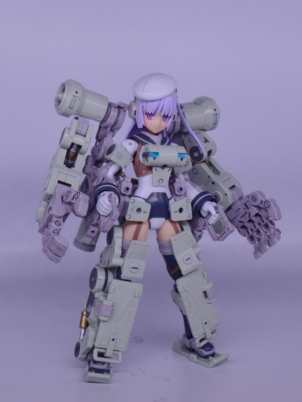 素体结构上感觉就是大鹫娘的雏型——但材料没用对,被人吐槽落后倒退的PC大腿根关节,其实并非设计倒退,而是材料问题...不用PC件我怕会断...手型也是个值得吐槽的地方,持物手偏偏是拼装的插槽还超短...