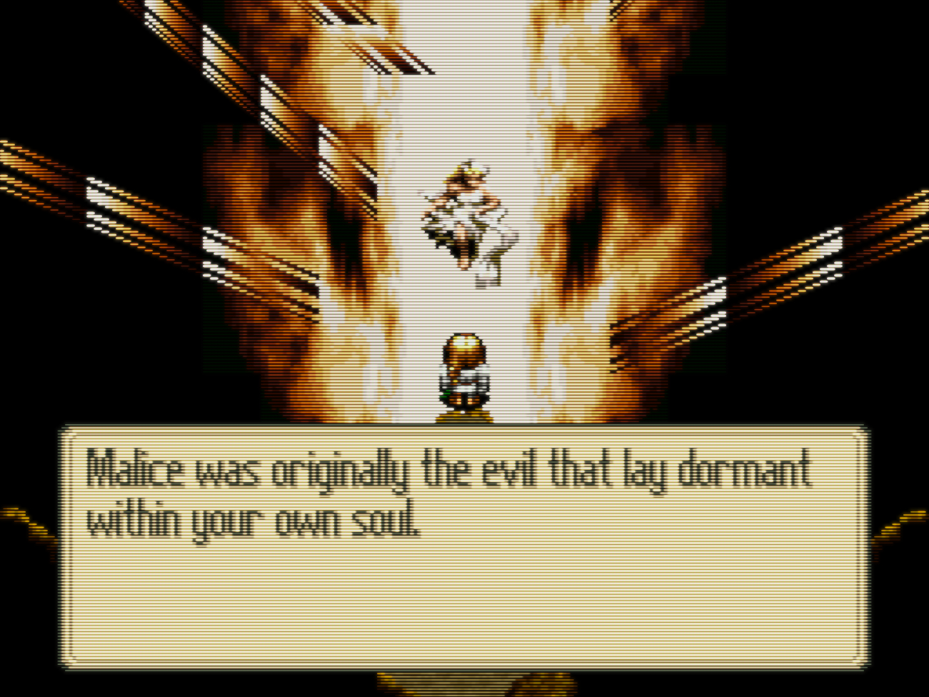 游戏的结局,有些事是没有解释清楚的,女神说世界是她创造的,malice(最终boss)把她的力量分成7份,而malice又是主角内心的邪恶,那主角到底是什么身份?为什么其他几个人在神殿都只是雕像,只有在七个世界里才能现身,但主角却能在神殿自由活动?