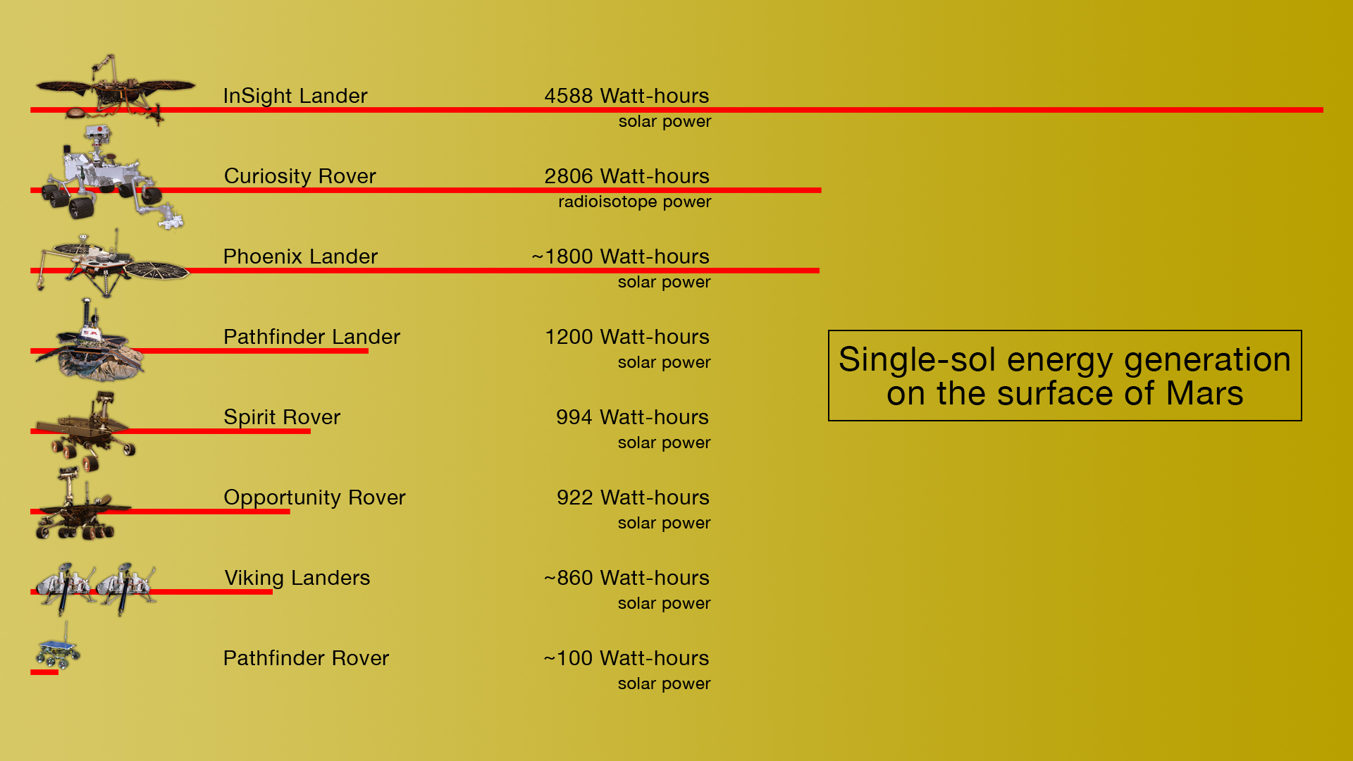 洞察号夺冠!历代NASA火星探测器发电量对比