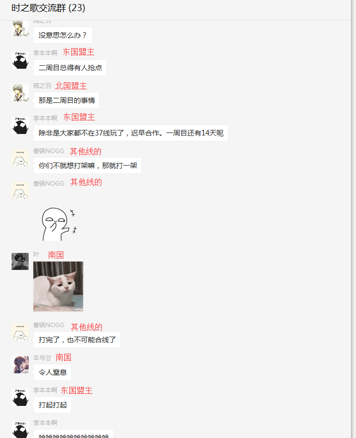 之后过了1小时东国就摸到了南国的4级据点幻境并开始攻打,结果出人意料的是打到最后让南国的小伙伴直接给补刀了,然后东国就炸了锅了,一致认为南国是偷他们东国的据点,南国的人也是一脸懵逼‘不是开战了么,怎么能说我们是偷你们的据点?’,之后两方在终焉频道展开骂战持续了一个白天,最后不了了之,不过东国一直记恨在心,也导致了后续的发生的一系列故事。