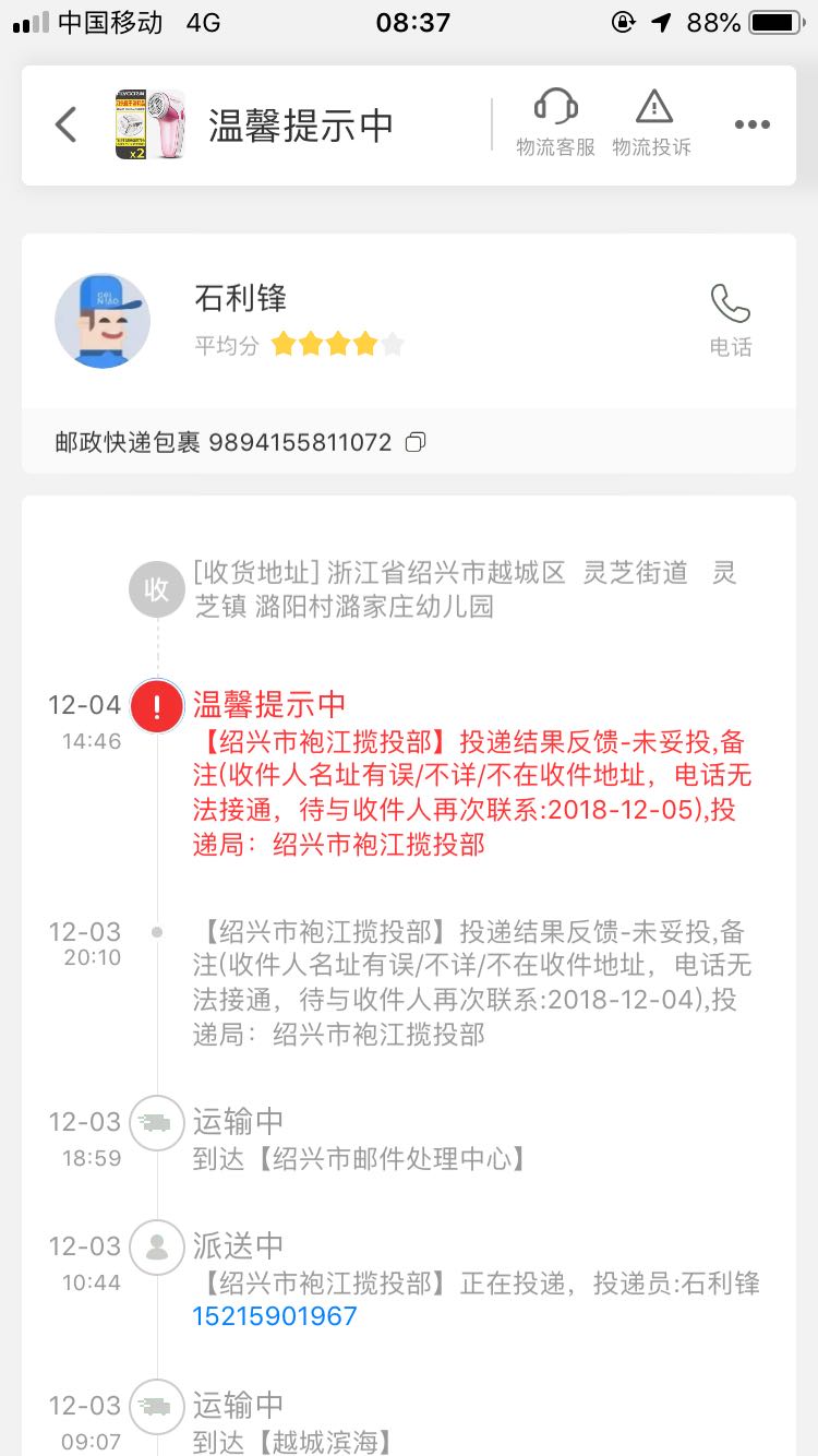 邮政,干的漂亮,第二个了!!!电话也不打直接说地址有误未能联