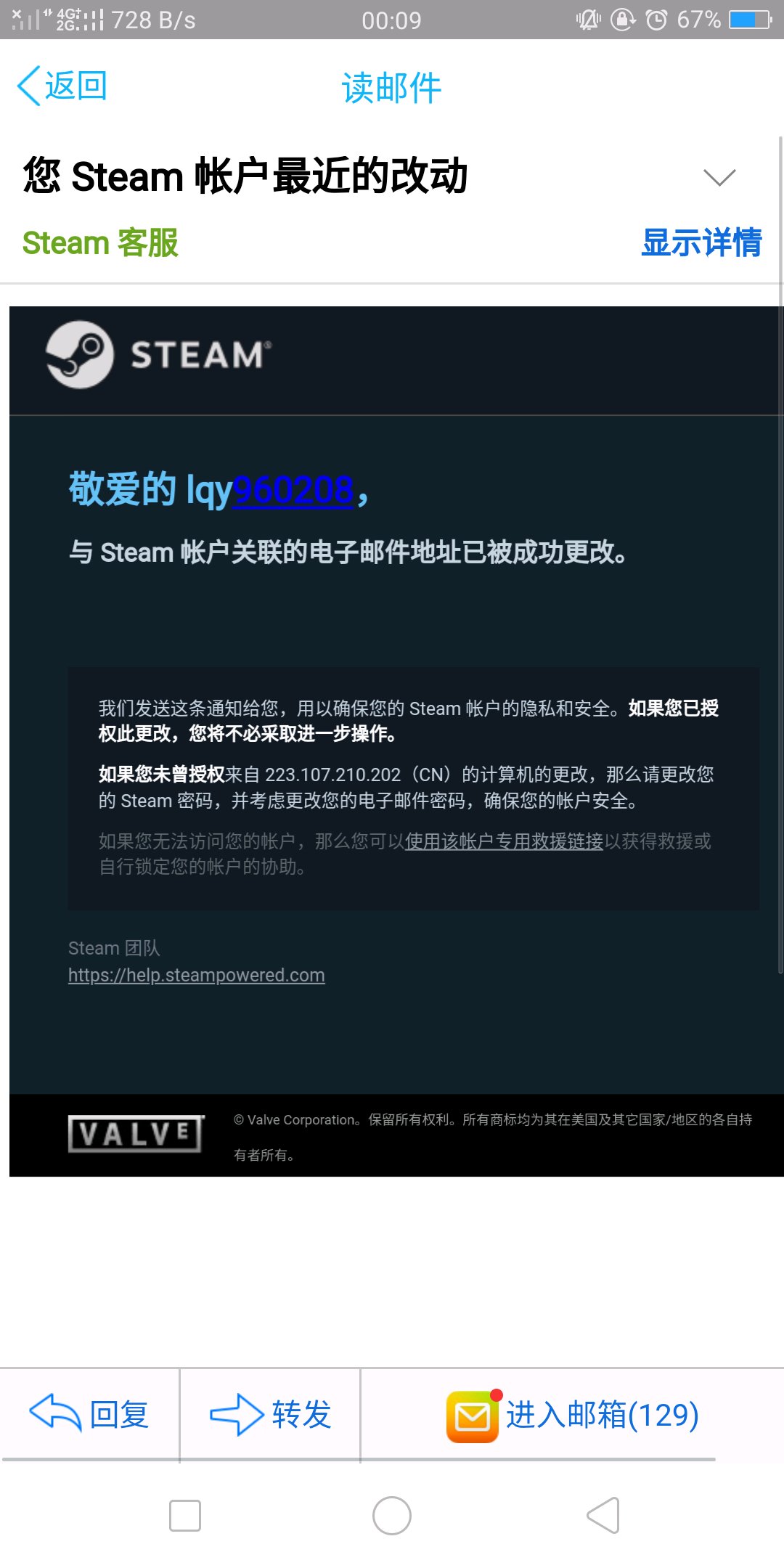 这是他更改了游戏账号关键的邮箱里的时间