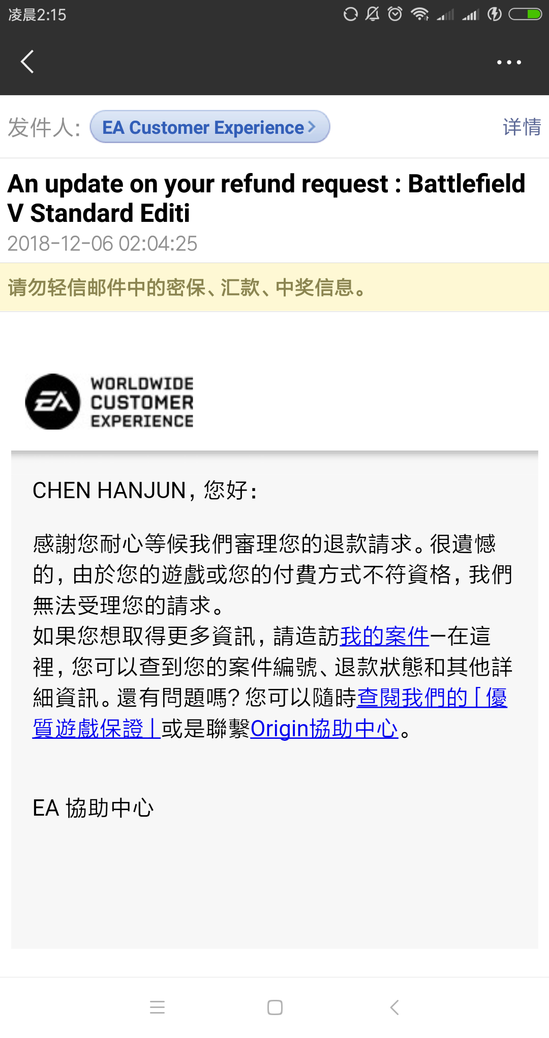 楼主在哪里给EA发邮件啊📩?我也是支付宝购买想退款!