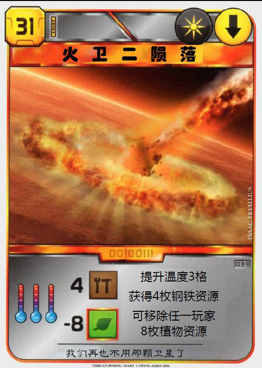 30. 花费0块打出穿梭机。8牌21钱5铁4钛4种12热。钛=4铁=3,全-5,地球-3,事件回3,钛-8,钛事件回3回3热,金星-2(这是增益效果的终极状态,后面都不会变了)