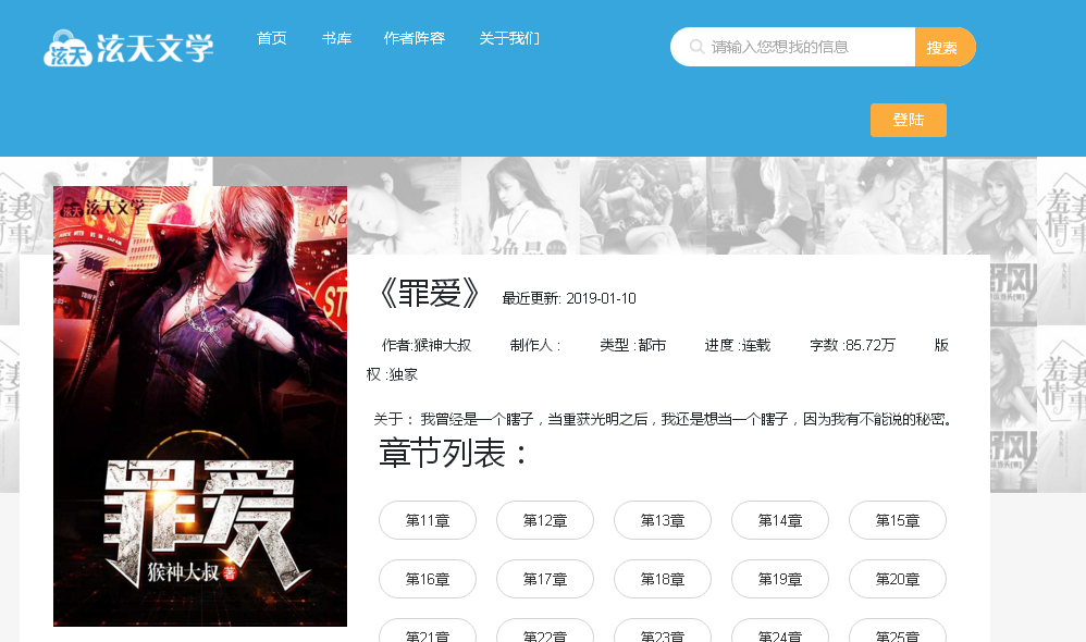 《罪爱》是猴神大叔的作品,首发网站是泫天文学。不过泫天网站已经太监了,现在也不清晰在哪里首发了。