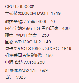 小白求配一个5500以内游戏电脑。含显示器