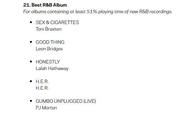 【格莱美】第61届格莱美R&B类提名名单