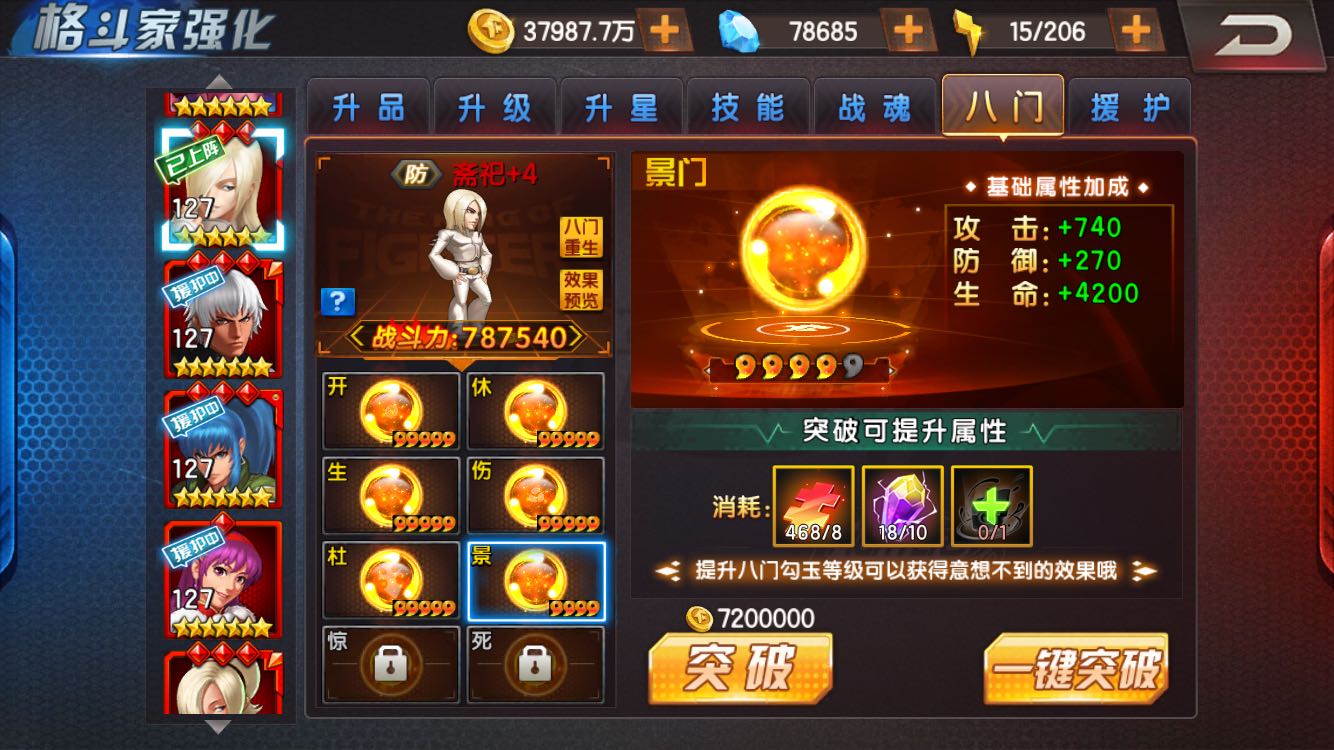 首先.我自己两个区..老头6星4门一武器..斋祀6门无武器.再等..军那6星6门一武器..瞬没有...所以不要和我说你有你就喊弱.看完再说..下面开始分析.