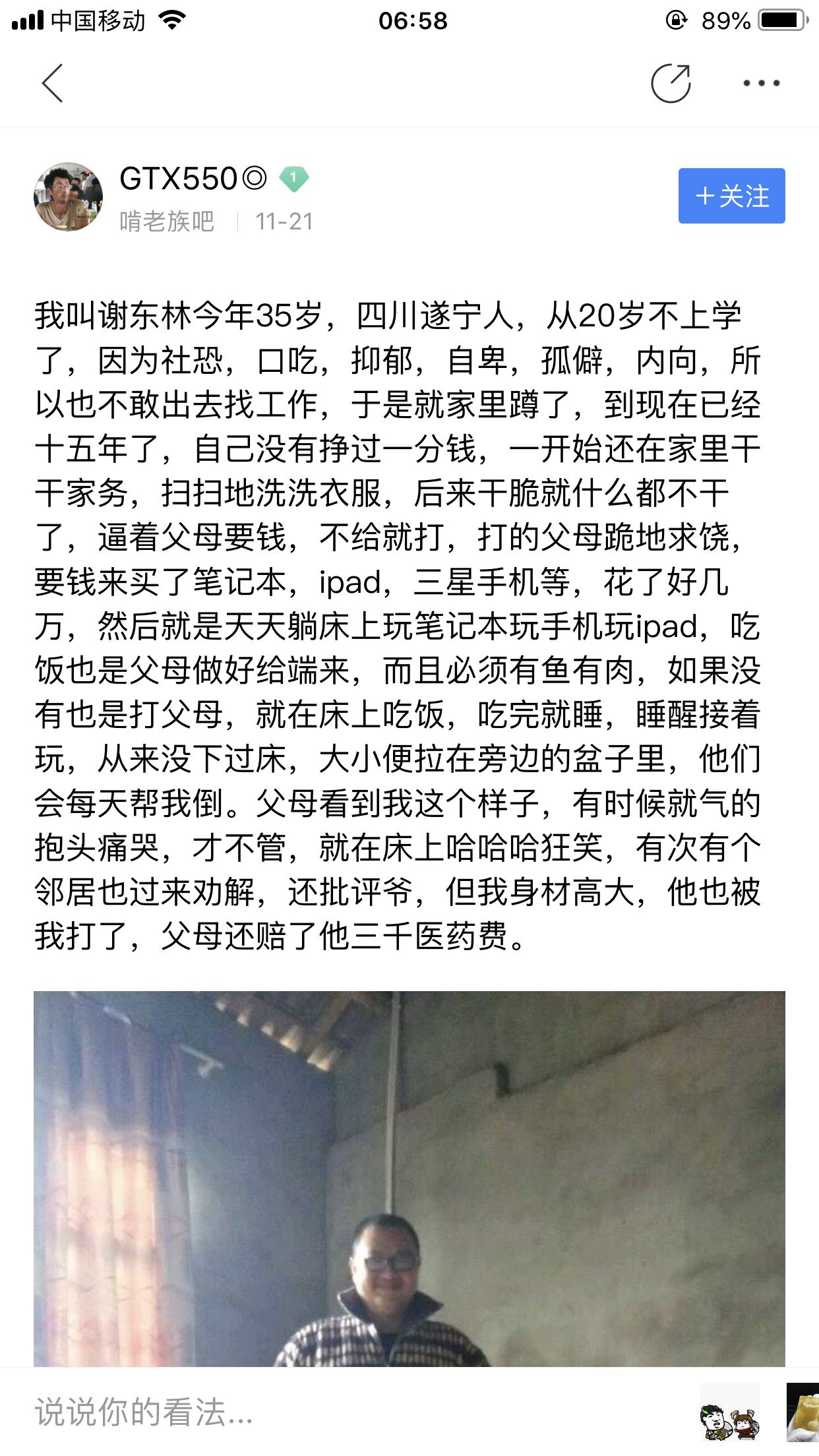 前两天好像看过关于他的帖子,大学时候挺帅的呀,说家里条件也不错,校花还是他女朋友。。后面不知道发生啥然后就家里蹲了?现在不是说是蹲吧的三大神之一么