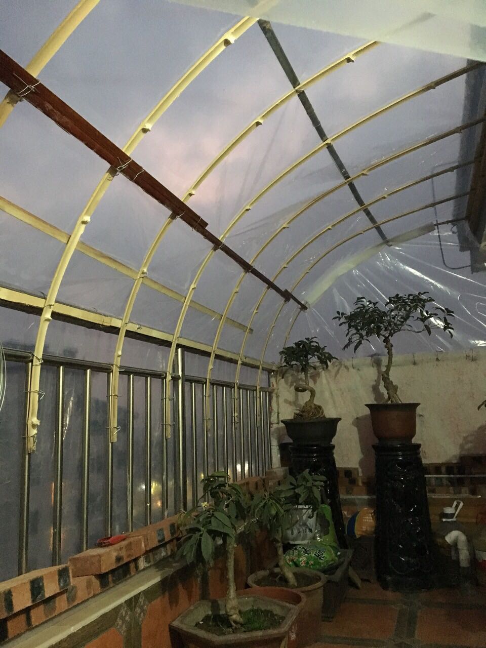 弄到这样就天黑了,还得接着弄,上面肯定得用几道铁丝压上的。谢谢!