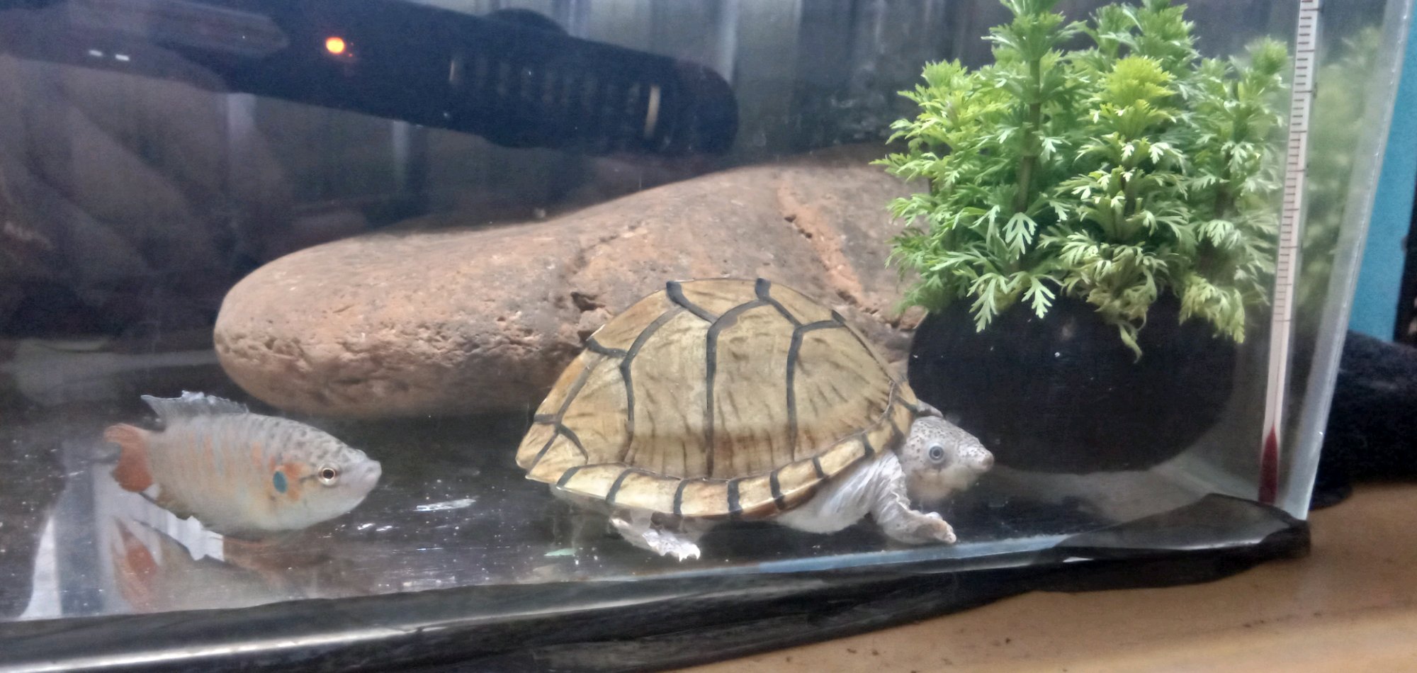 希拉里能和剃刀混养吗?希拉里背甲15㎝,剃刀背甲8㎝。鱼缸一米。我想养一起,这样就可以省一个加热棒