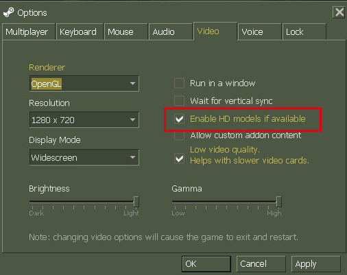 将"Enable HD models if available"的钩去掉即可