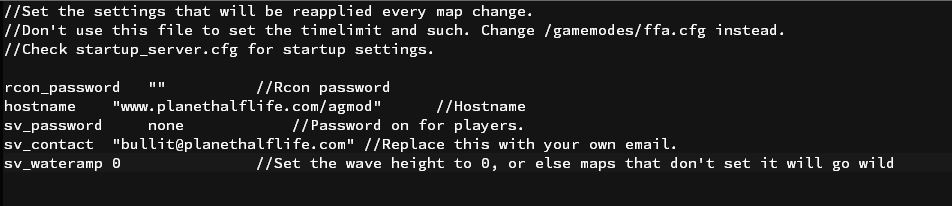 hostname这个参数是你的服务器名称,sv_password则是服务器密码(这里sv_password后面是none,也就是无密码)。你可以把服务器名称和密码改一下。