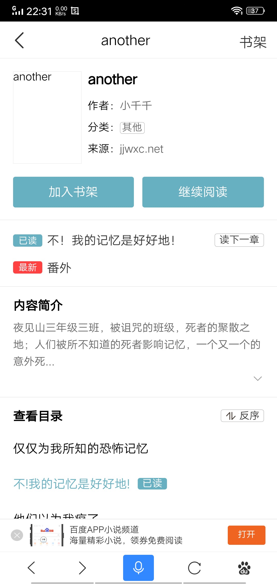 emmmm,我今天重新回顾一下Another(初一时候看的)。心血来潮百度了小说,,然后看到了类似。。。不存在的东西。总之给吧友们分享下(不确定是不是抄的)