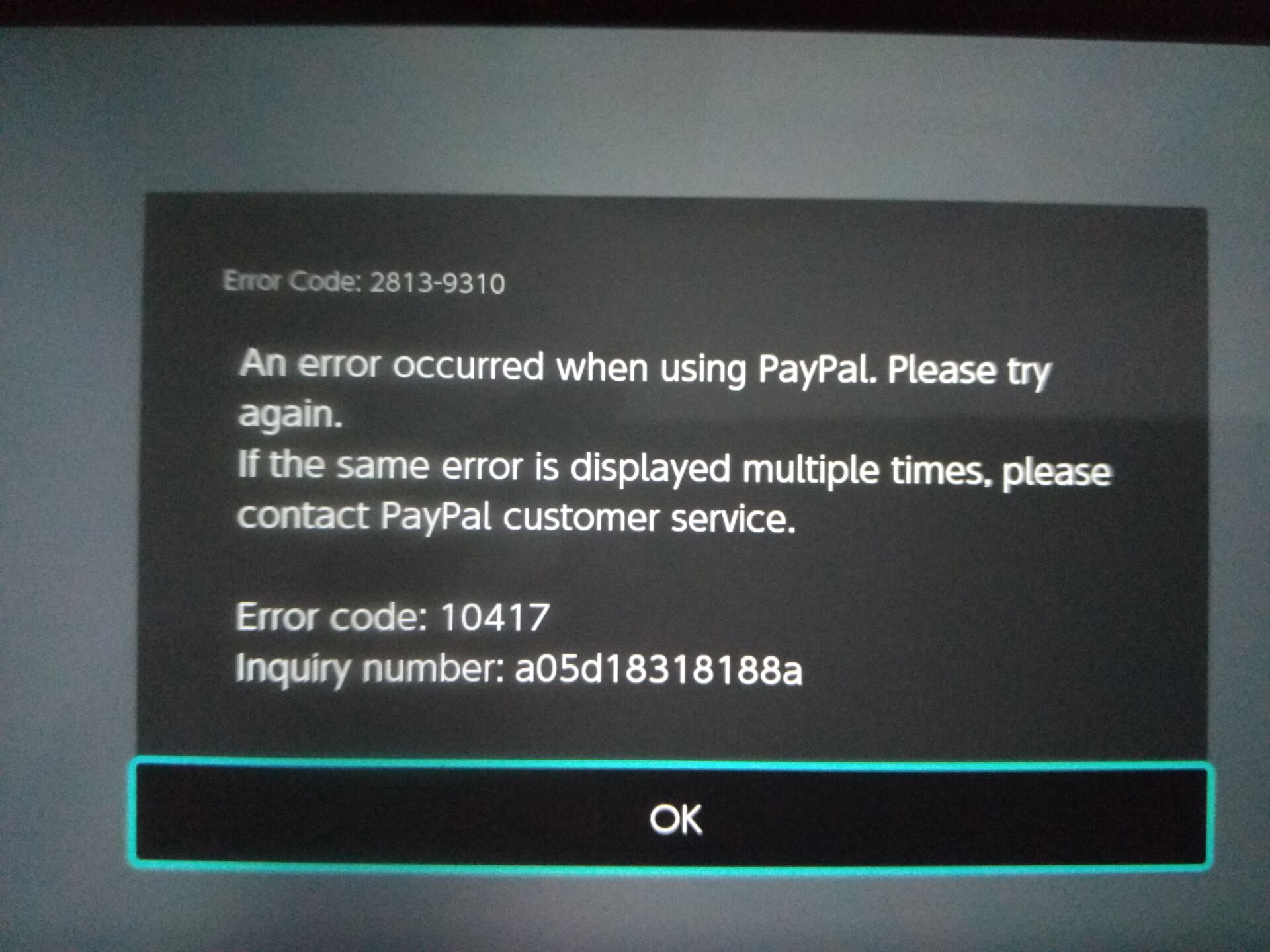 第一次用NS买数字版的游戏 注册了paypal打算买洛克人11但是前面都好好的 就是选择付钱的时候一直提示这个