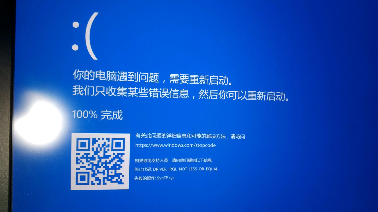 根据你截图上的错误信息synTP.sys是触摸板的问题