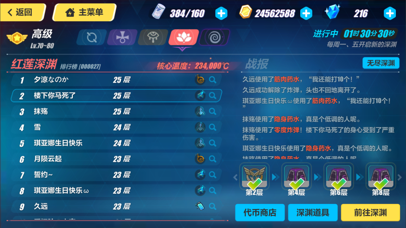 原来炸弹没层数限制的时候的我就专门炸红莲竞速25层的