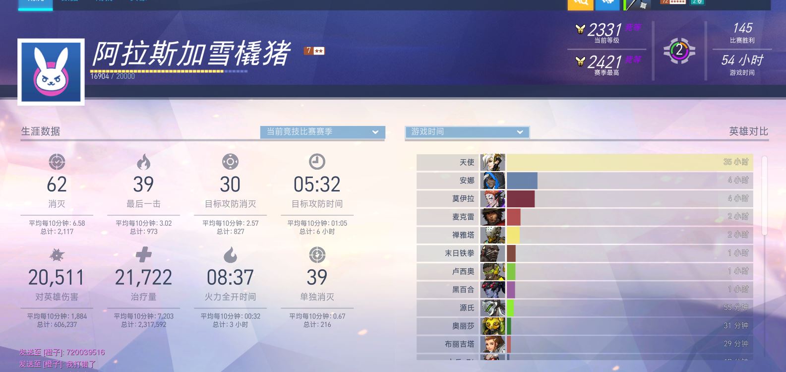 忘记说他还带了DVA双排,是不是后来换的猩猩我不知道。