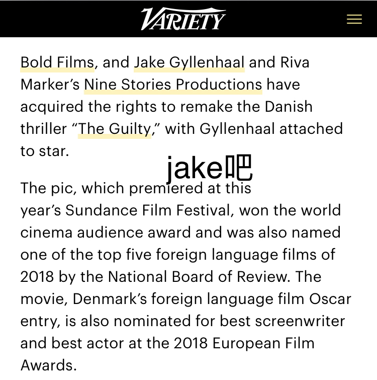 老吉公司与博徳电影合作,拿下了今年圣丹斯电影节大奖的丹麦影片“罪人”的英语翻拍权。该片也是丹麦今年的冲奥片,并且被电影协会评为本年度最佳外语片第五,同时还在欧洲电影节拿到最佳剧本和男主提名