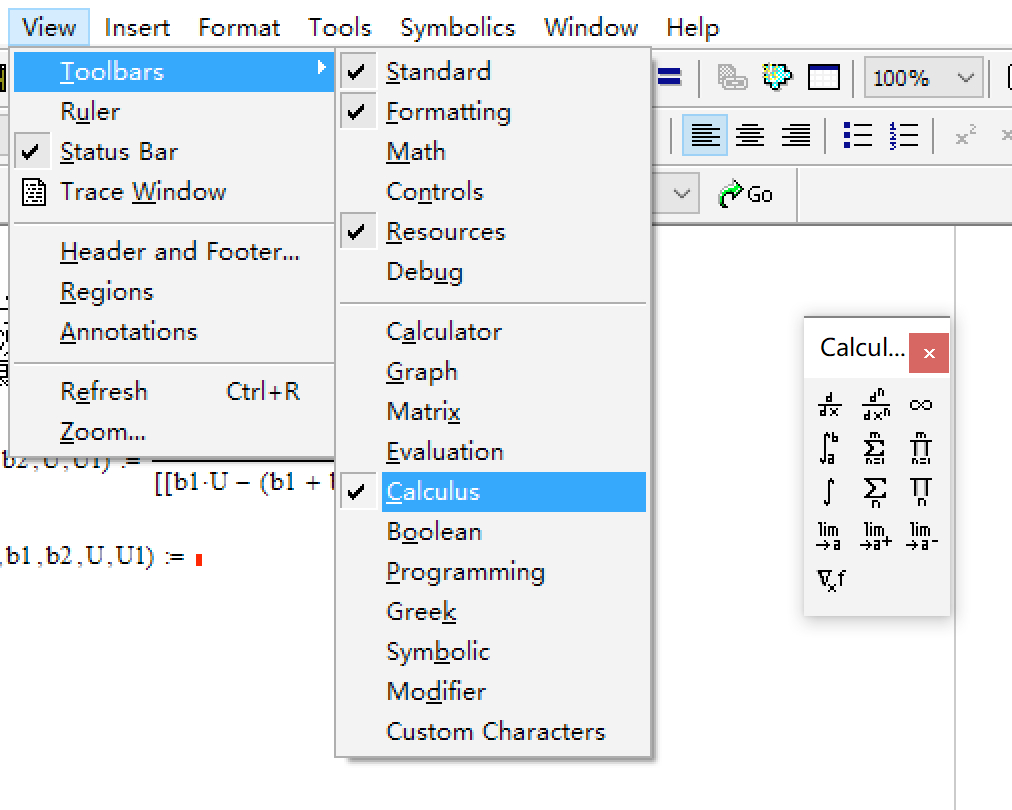 View -> Toolbars -> Calculus:
