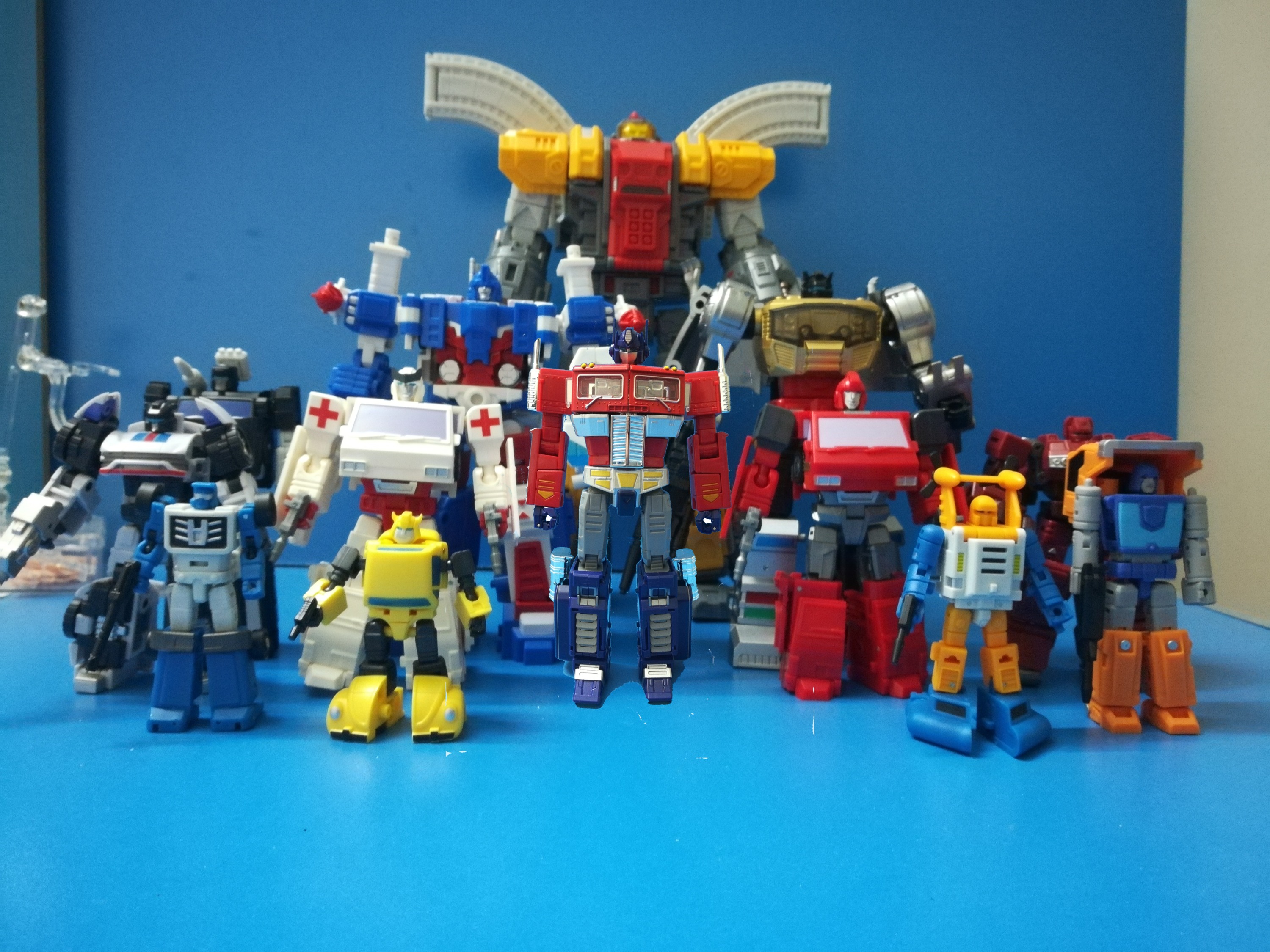 铁工厂的横炮飞毛腿断货了,要不也收来,比例合适。魔方的横炮脸难看了点。。。通天晓又太矮了,PT的通天晓又太高。。。