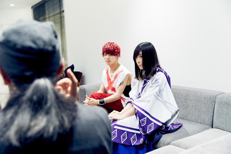Hiro:我本来只是作为粉丝喜欢さユり的音乐,但是live也是「2.5次元」的话,看到了我们没办法想到的共演舞台。那时候我就想「和我们风格不一样,但是也制作着帅气的音乐的人」组二人组。所以就和さユり打了招呼,在广岛共演之後,就想,不仅是live,如果一起作曲的话多好啊。
