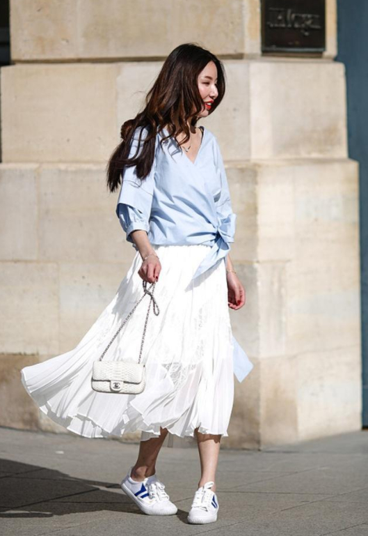 图中小仙女的穿搭让人有一种充满活力有跳跃感,比较适合于沉稳干练的小姐姐,显得沉稳干练,我非常喜欢