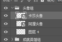 首先单击头像组里第一个图层,这样拖入素材时素材就会出现在这个组里,并且是最上层,方便操作
