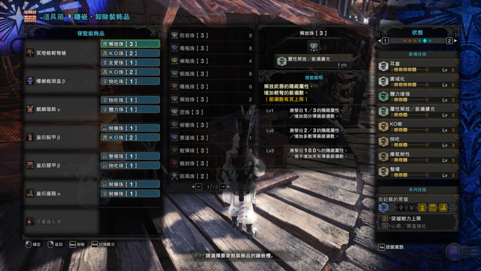 冥灯弩可以换融山重弩 耳塞护石可以换茸食 ko术可以下掉上个满足感就这样