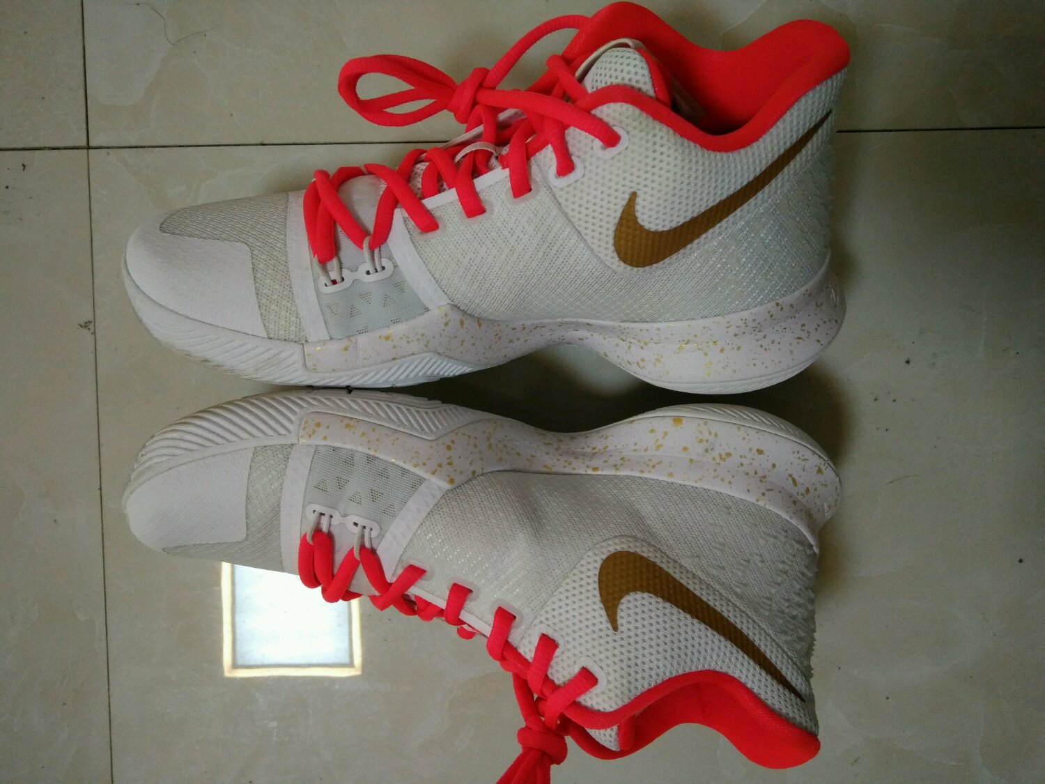 kyrie3 ID 白金,40码,比市售白金更好看,全新小码的白金都上千了,这双id换了内衬和鞋带的颜色,没有了市售白金内衬容易发黄的毛病,比市售的颜值更高!穿一次,左脚鞋头略微爆漆。550包普快,售出非真假不退不换
