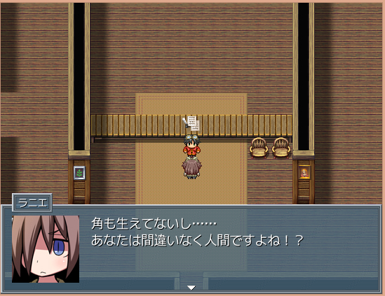 旅馆里见到?,上去对话,有趣的是小女神先确认了一下对方是否有角,?是猫君的友人罗,不过对话间有奇怪的气氛,交谈后罗表示会和众人暂时同行。剧情进入夜晚,罗与猫君的谈话,透出阴谋的味道。