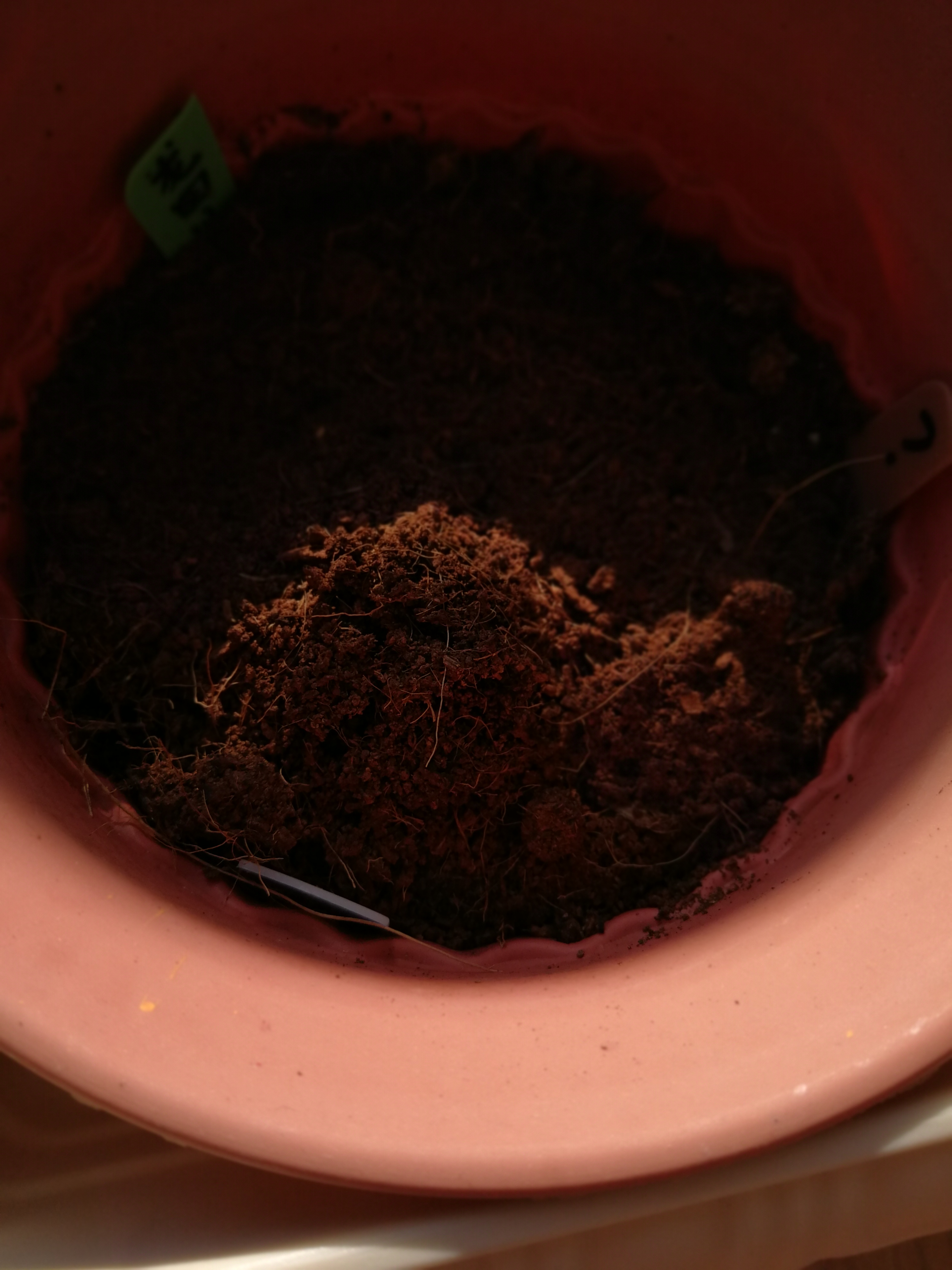 种子是一周前埋下的,没有预先催芽。这些种子已经放了二年时间,起初常温储存,后来冰箱五度。