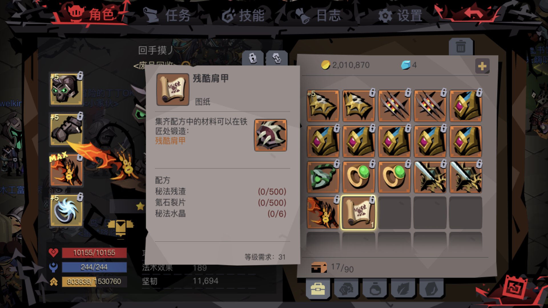 推荐大家大剑堆闪避、 牺牲很多攻击孔堆了些1级石头闪避加1.5。 我闪避达到了百分之15.. 单刷图1暗金奇遇2瓶小红直接过.. 闪避触发蛮可观的。 闪一次CD时间和状态基本不慌。