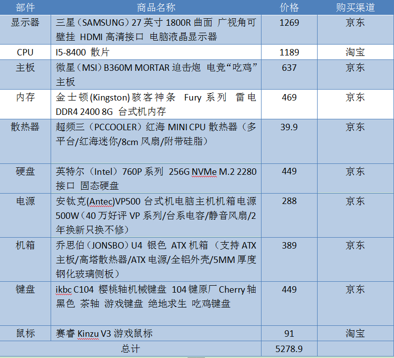 给同事配了台i5-8400的办公电脑,大伙们来提提建议