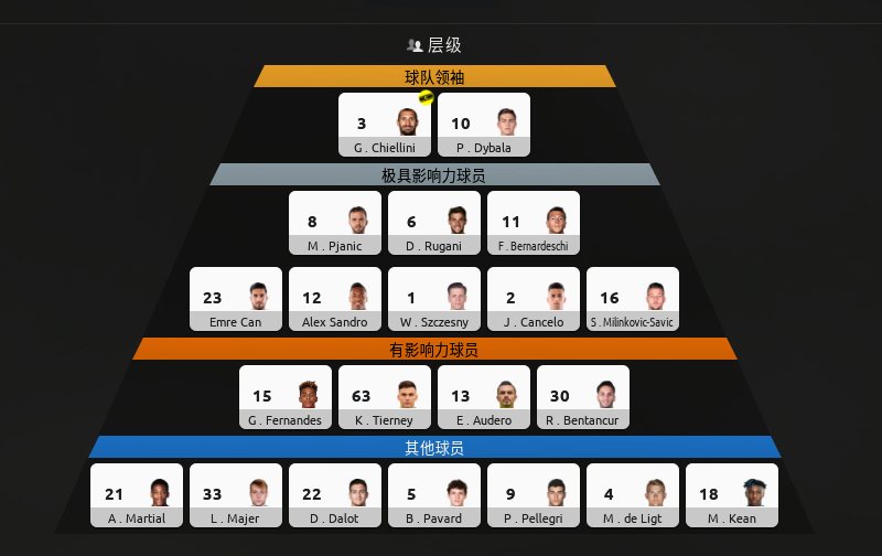 一般来说出场时间不够,ca下降等等会造成球员层级下降,会提示的,说什么xxx在更衣室显露出举足轻重的地位或者影响力不如之前xxx