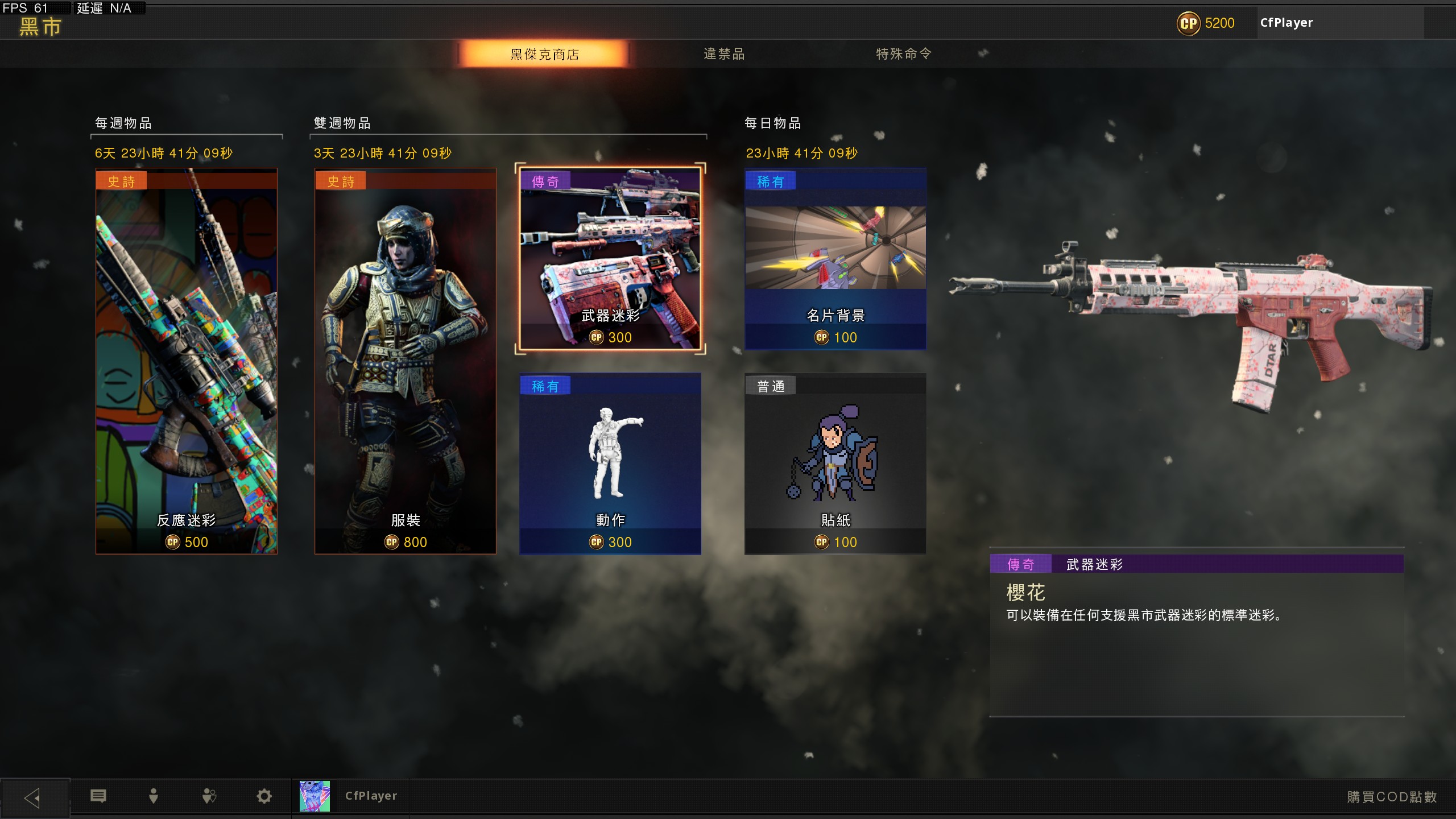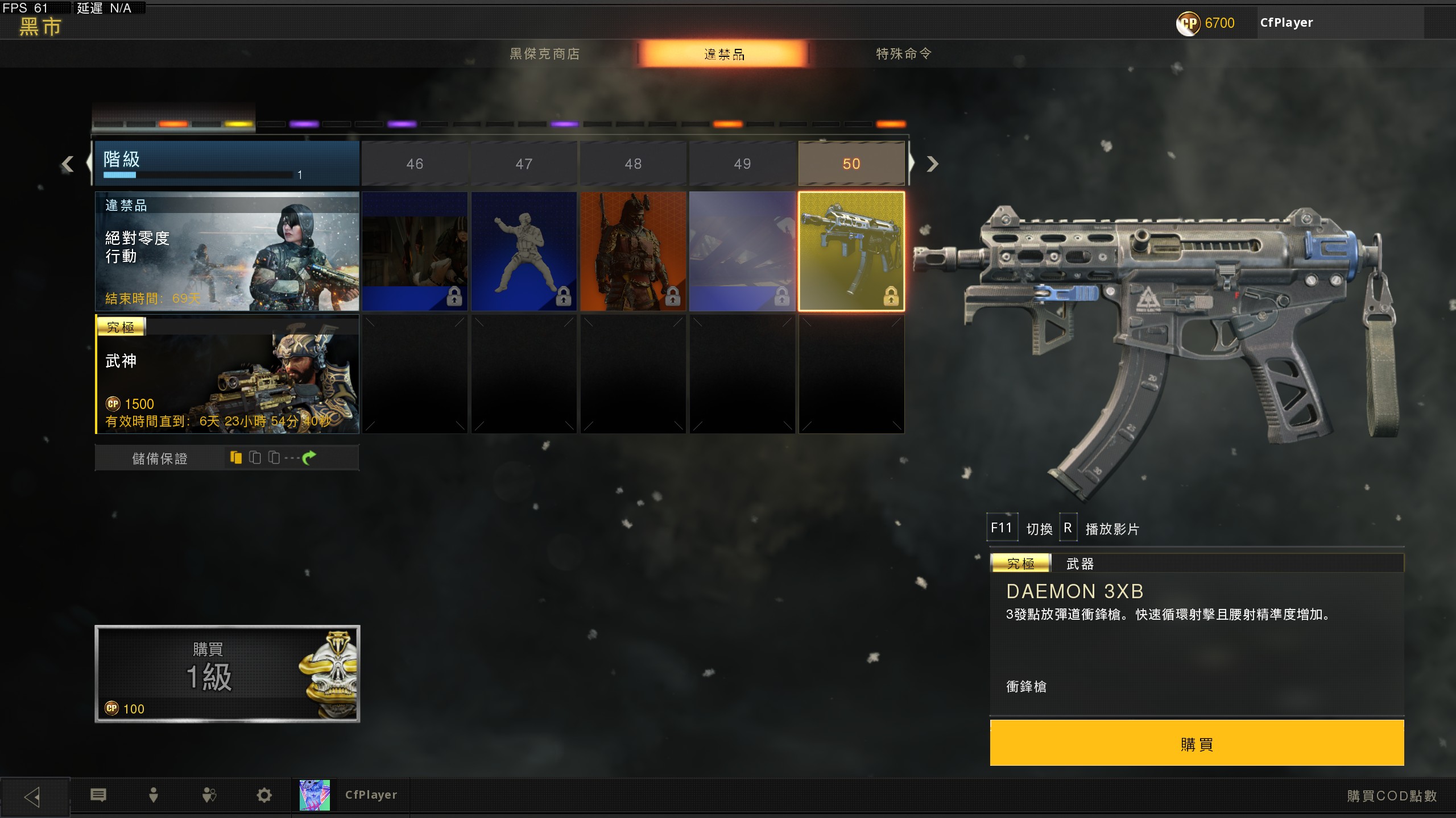 也是 100级挺快的 主要也没啥时间玩这次抽空把黑市肝出来 第一次黑市没得到皮肤不知道以后还会不会有?