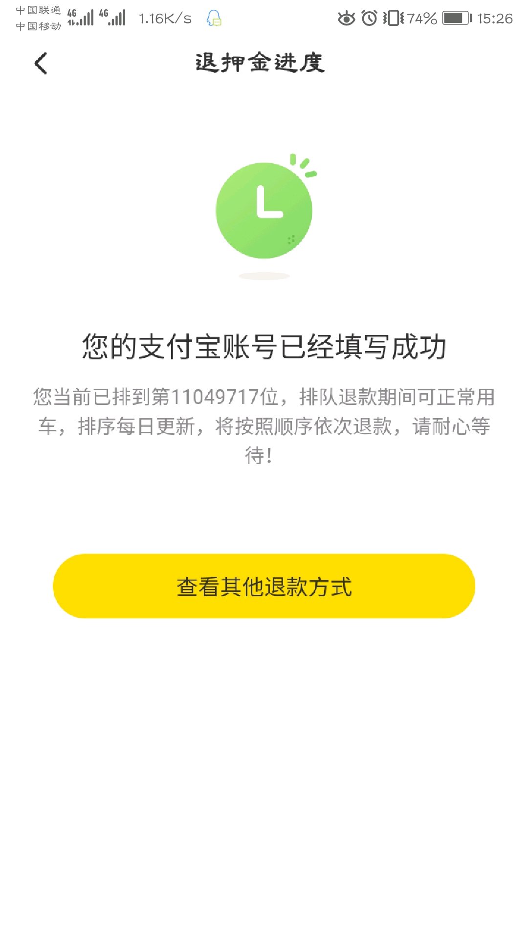 有人退到押金的截图看下