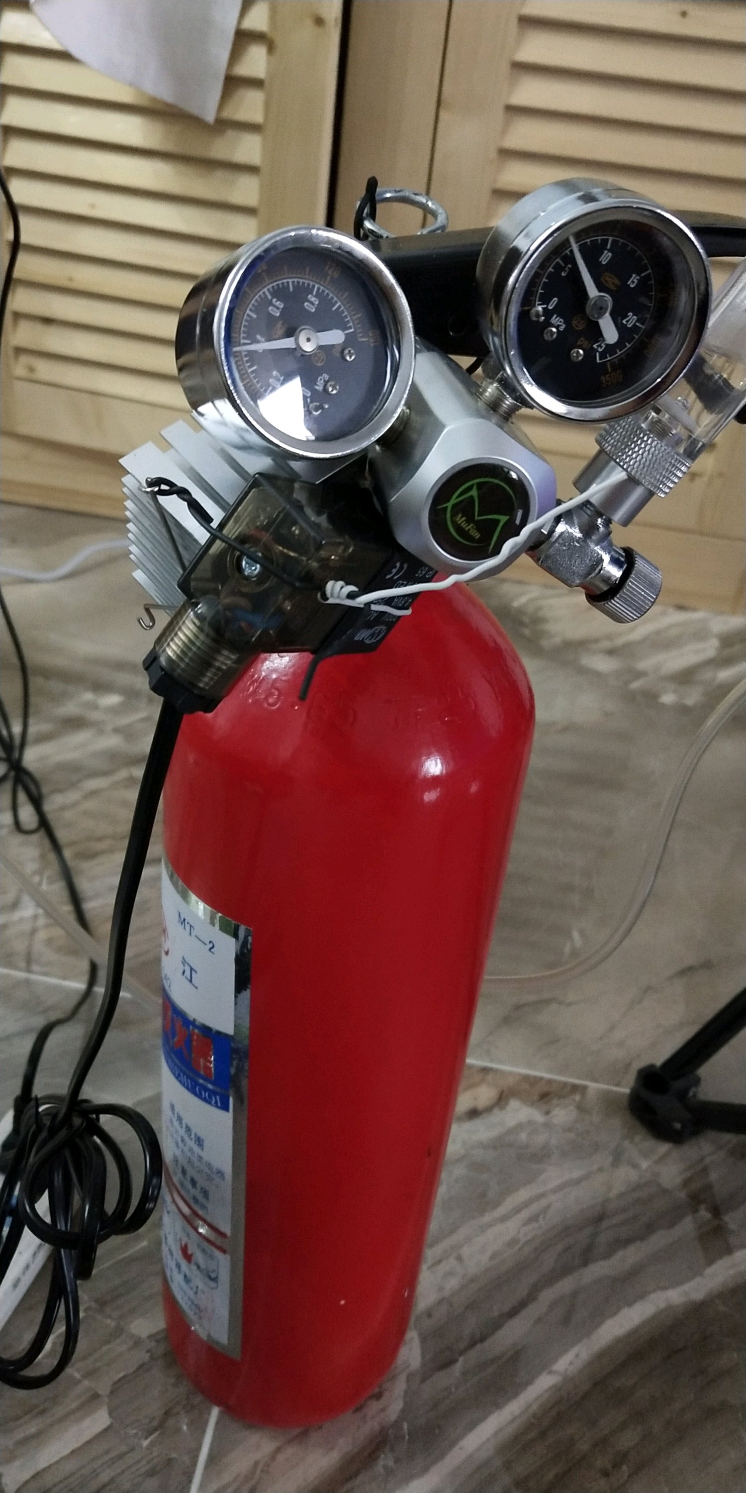这玩意爆炸了可不是塑料瓶能比的,安全才是重点,建议放弃吧,上闲鱼买个二手二氧化碳钢瓶加电磁阀套下来200左右用到不想养水草了150出点大把人要,这点账总归能算明白吧,前两天有收了个230全套大双表电磁阀4升建设钢瓶使用一年半发票还在,过两天去拿货了