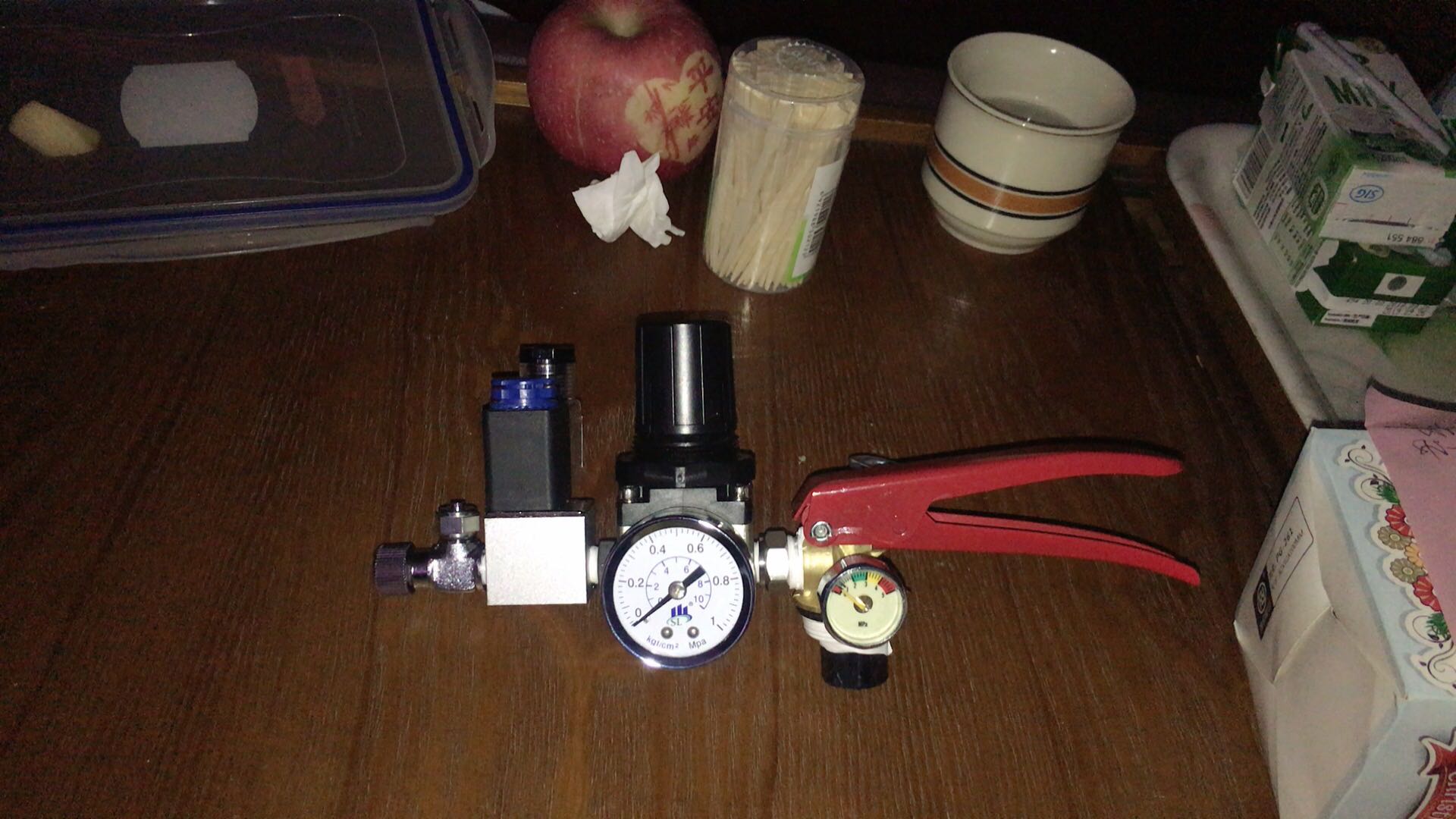 抹黑组装完了,自左向右依次:微调阀,电磁阀,减压阀,握把
