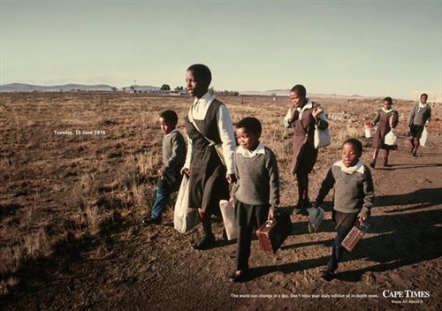 我们无法预知未来将会发生什么,谁也不知道下一分钟即将发生什么... 这是非的Lowe Bull广告公司为Cape Times日报做的一系列“前一天”的广告。 广告使用了历史上四个重要事件发生前一天的珍贵照片,非常震撼! 广告语:“The world can change in a day. Don’t miss your daily edition of in-depth news.”——世界能在一天内彻底改变,不要错过Cape Times的每日新闻深度报道。 这就是Cape Times日报的创意广告:《前一天》我们无法预知未来将会发生什么,谁也不知道下一分钟即将发生什么,我们能做的就是珍惜现在...