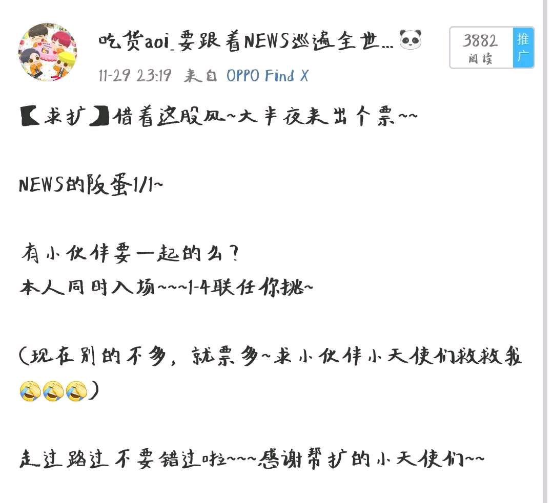 NEWS◆求助◆求各位爸爸们 拯救吃土少年 为了中票 结果……全中了 现在多票 求同行(跪) 可以微博私戳我