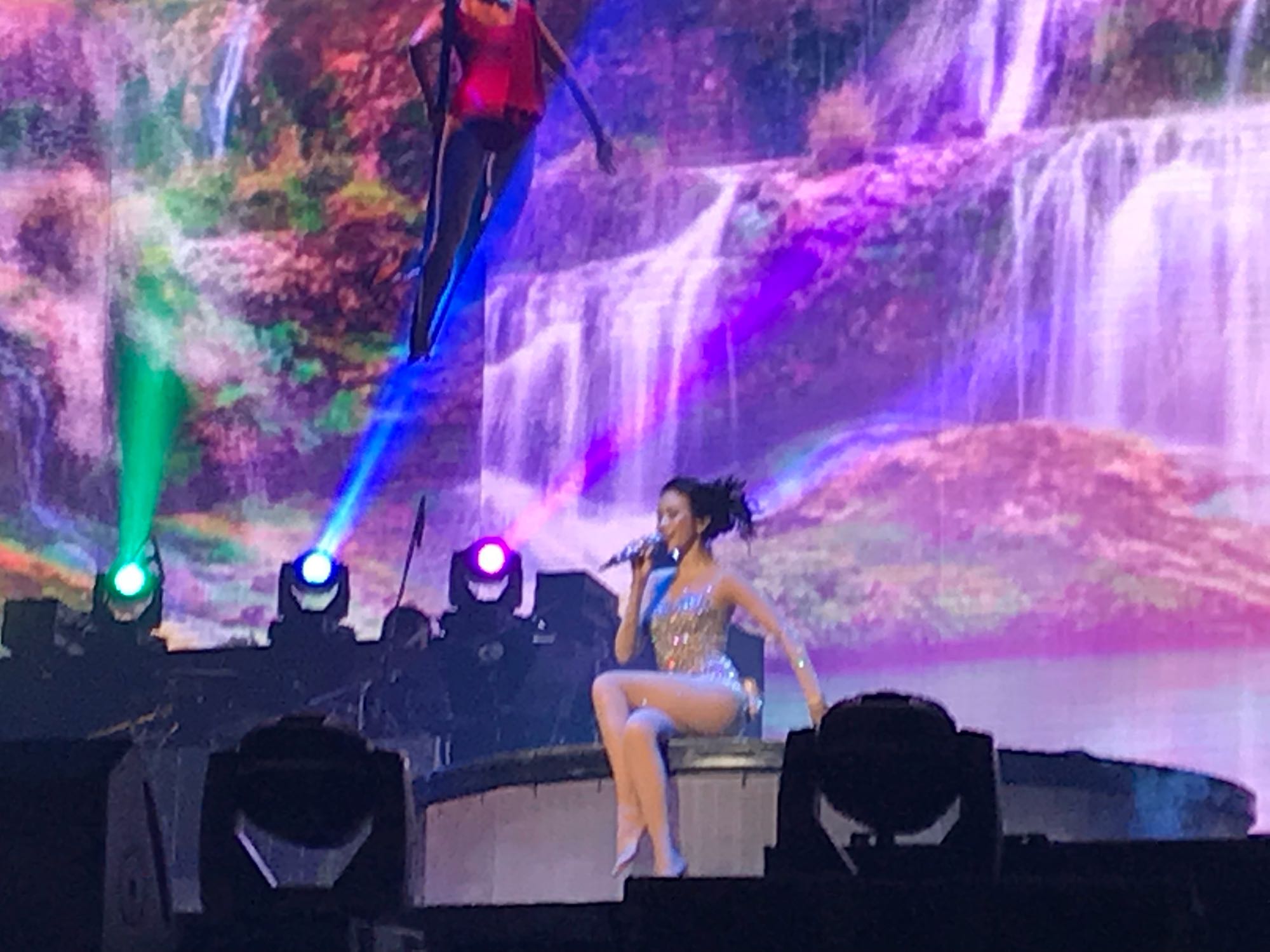 唱完之后,莫后换衣服,但好像换衣服的时候卡壳了一下,然后开始第二首——娘娘驾到。其实我一直没有很喜欢这首歌,特别是歌词颇让我...无语。但每次听到live还是觉得很有气场,很有自信,举手投足间确实很有天后的架势,也颇能带动现场气氛。