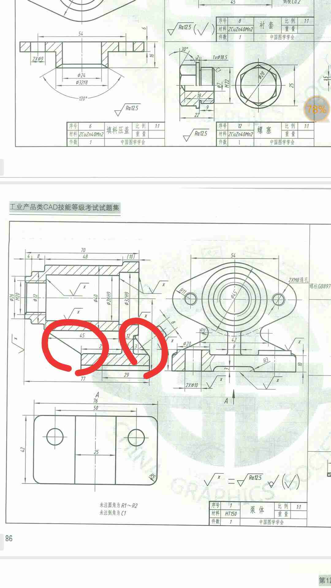 求大佬们帮解答一下红圈内的怎么画,因为我怎么画生成的工程图都