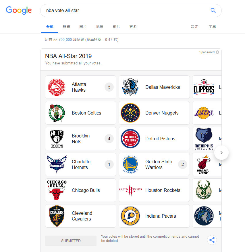 球迷投票可經由在Google上搜尋、透過Google助理,也可以使用NBA的App和官網。