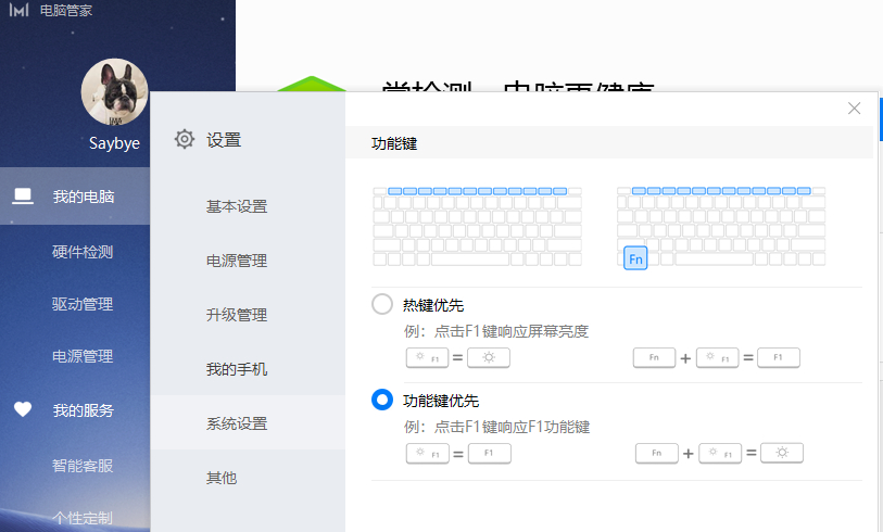 Fn作为功能键,通过组合就应该改变默认按键的功能。而魔法本呢?Fn有小灯,可以设置灯亮的时候F1调亮度,熄灭F1作为原有功能(帮助),那么Fn+F1呢锁定为调亮度,锁定为调亮度,是的,锁定为调亮度,这是一个复杂的逻辑问题,要想明白颇费脑筋。
